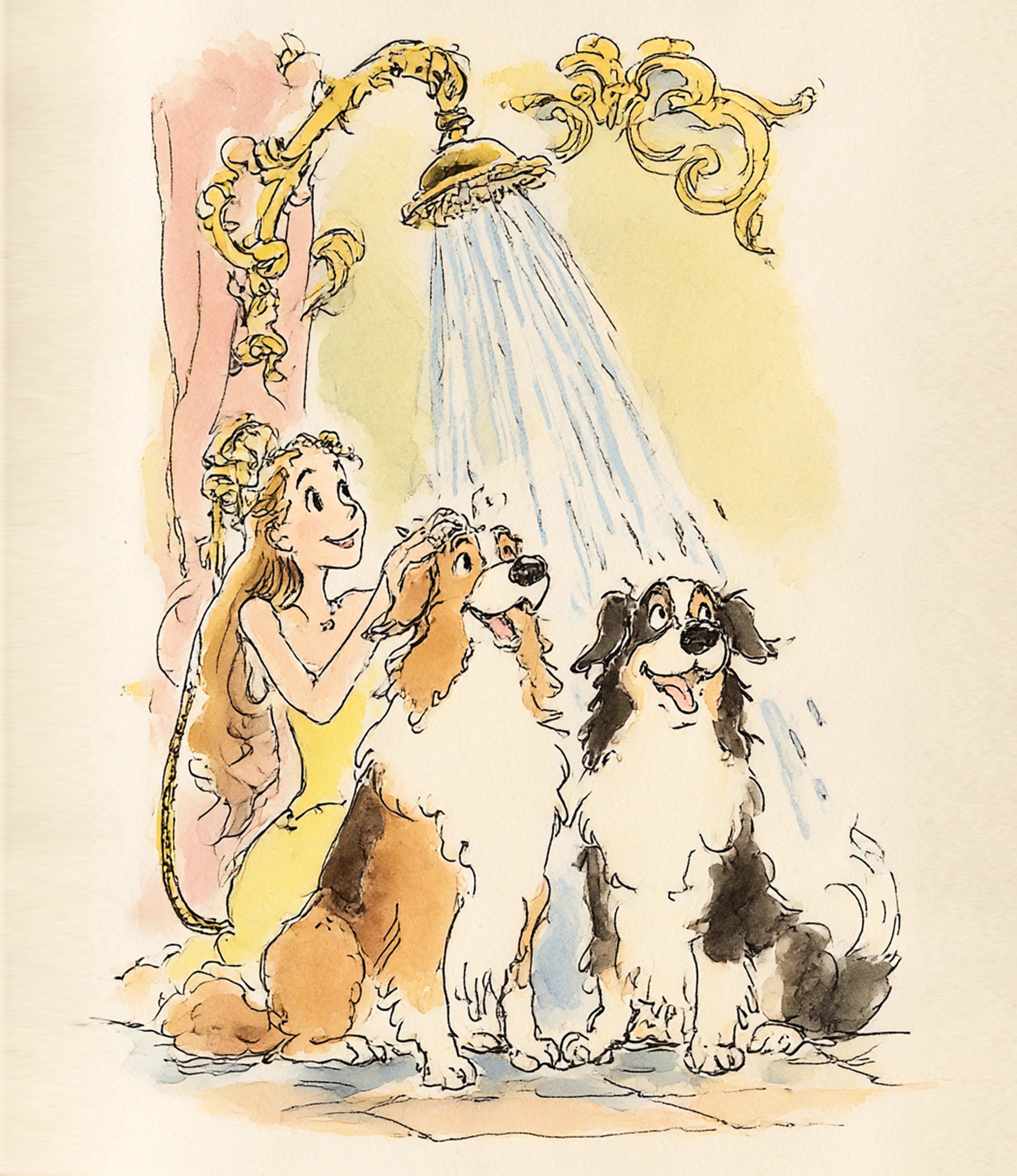 1. Fill the tub just enough to cover your dog’s paws and tail. Add a small amount of shampoo to create a gentle foam.